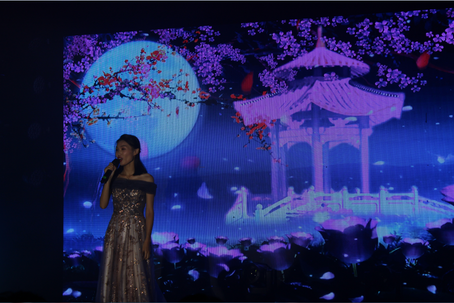 第六個節(jié)目是由牛懷賓、陰麗瀟、彭洋共同表演的《歌曲串燒》。