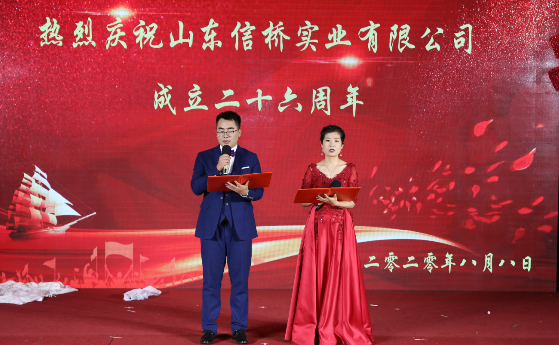 2020年8月8日,山東信橋?qū)崢I(yè)有限公司二十六周年慶典在泰安帝苑酒店隆重舉行。各路榜樣精英、以及二十六年來給予信橋厚愛的各級領(lǐng)導(dǎo)、各位同仁、新老朋友在這里歡聚一堂,與為公司付出辛勤勞動的全體員工一起,分享屬于大家的光榮與快樂!