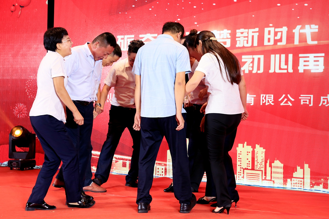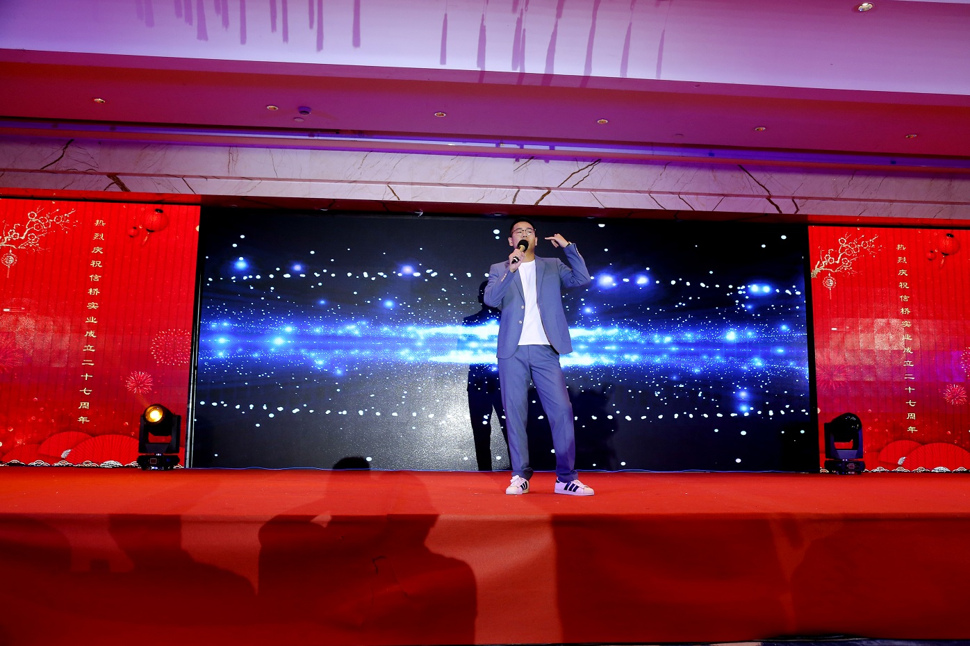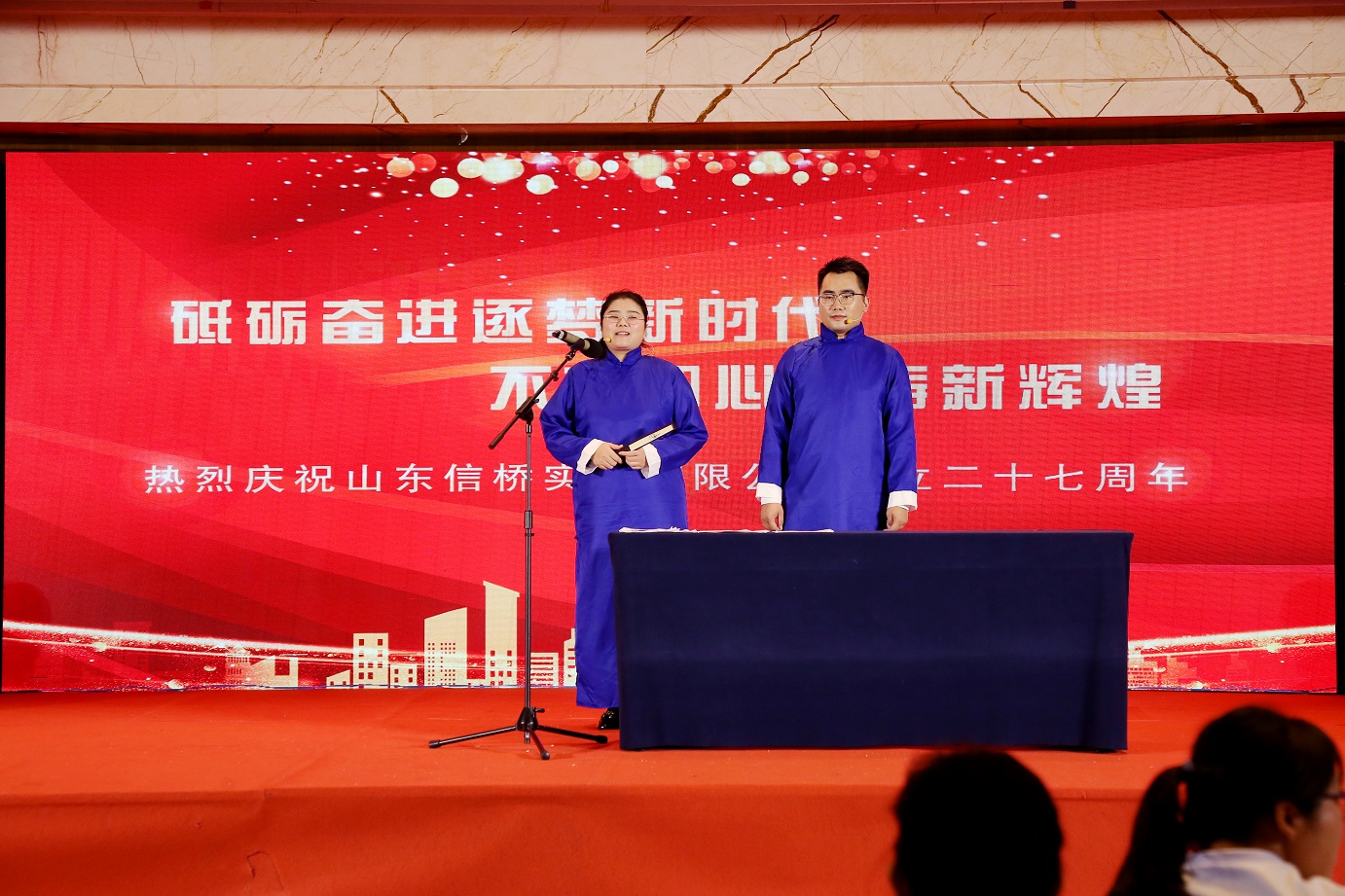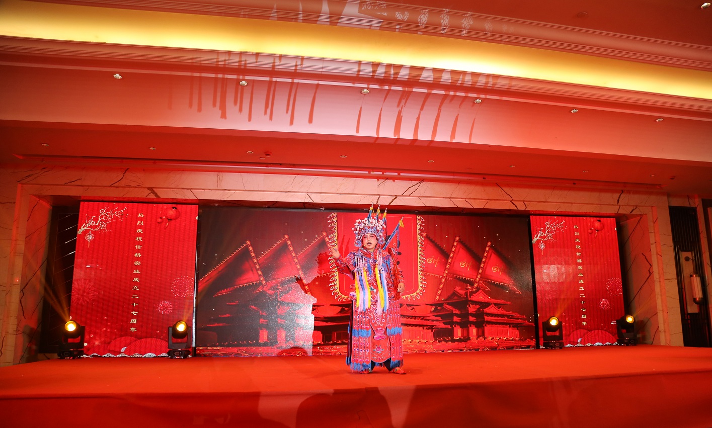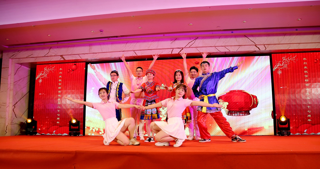 此次慶典晚宴參加人員除了信橋全體員工之外,還有部分老領(lǐng)導(dǎo)和老朋友,大家共同分享了信橋二十七周年的喜悅與精彩。八號上午,慶典開始之前,演員們辛勤排練,燈光師、音響師共同配合,所有人為了晚會都在努力。下午4點58分,晚會正式開始,全體員工與領(lǐng)導(dǎo)集體合影,信橋隊伍不斷在擴大。今年的晚會添加新的互動方式,采用了直播和紅包雨的新形式,是信橋周年慶典的一次新的嘗試。